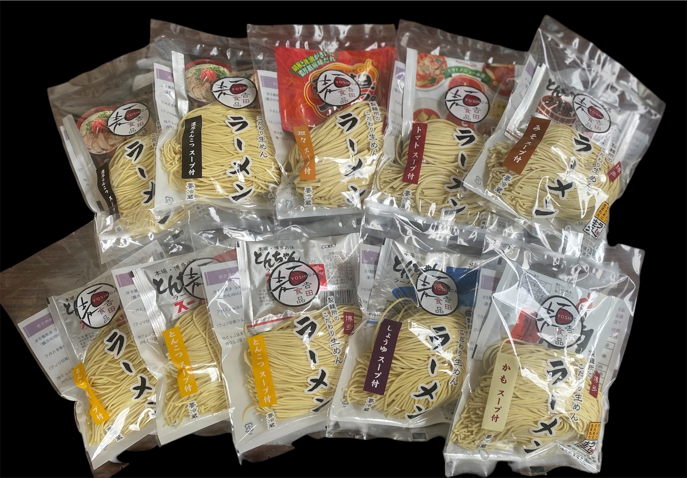 (とんこつ・濃厚とんこつ・かも・味噌・しょうゆラーメンは細麺、トマト・担々麺は平麺です。)