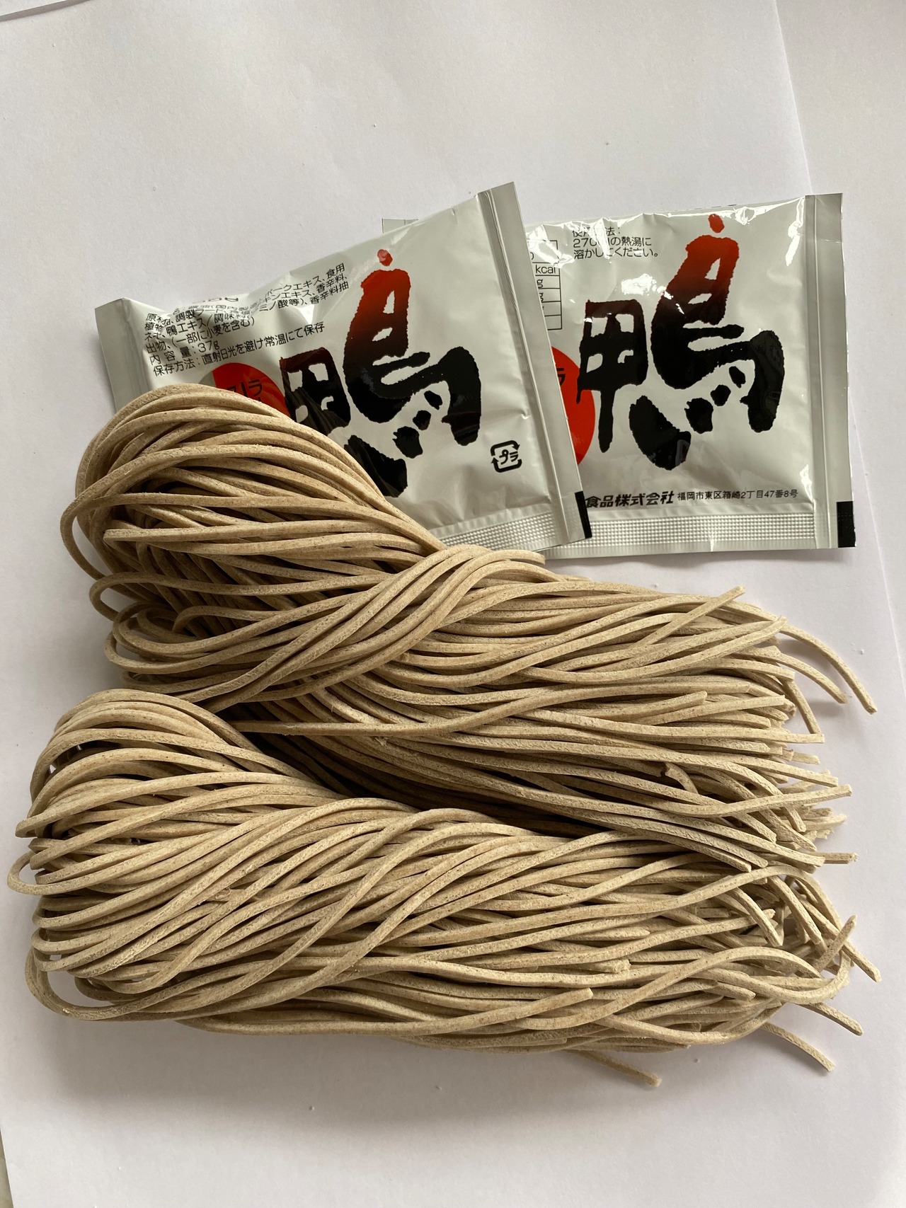 1袋に2食入り出汁付き、が3袋6食入りのセットです。鴨そば4食、普通出汁2食のセットです。